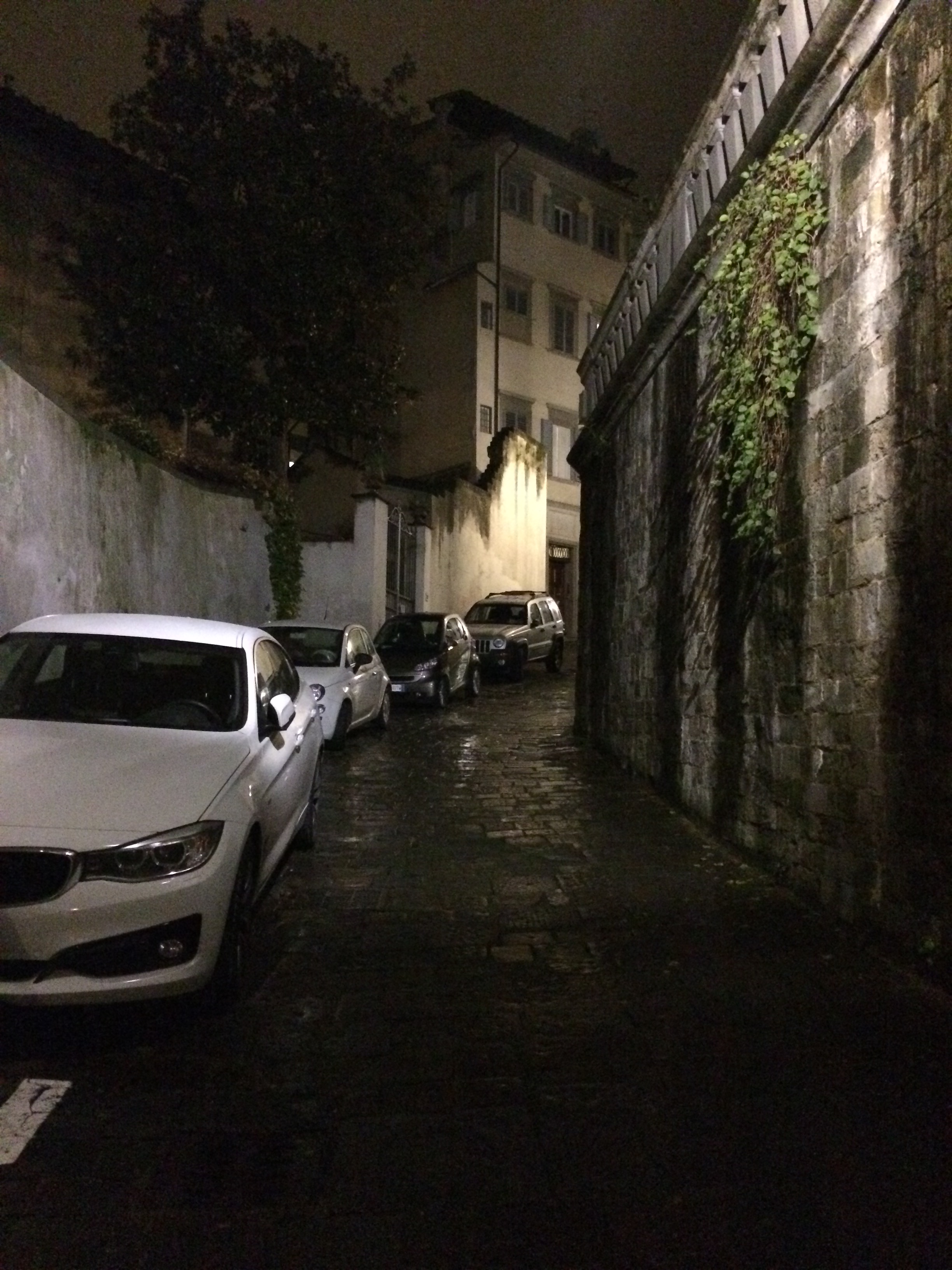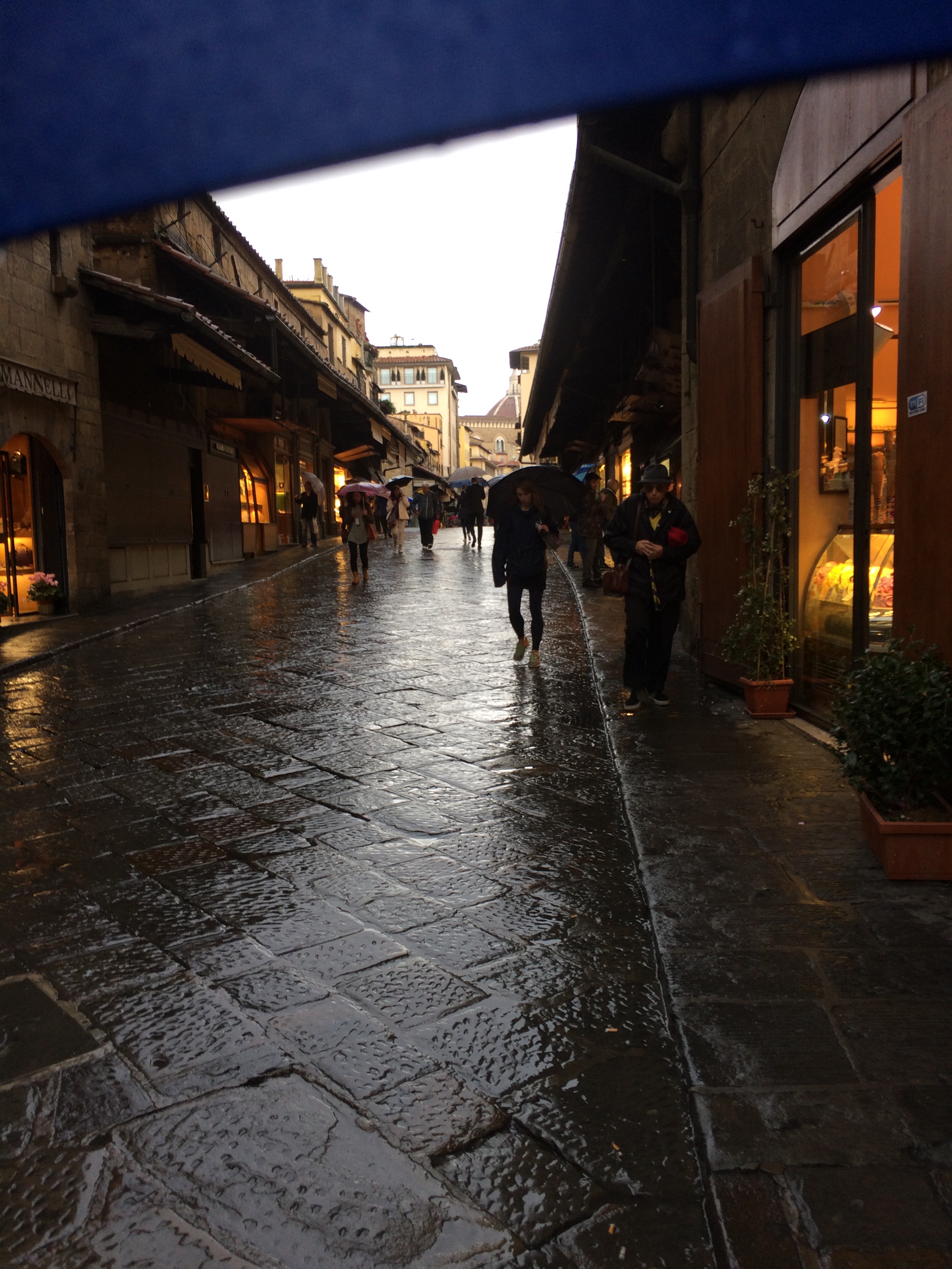I am grateful to the family who rented me my dream apartment. It is more than what I hoped it would be. The brick floor and stone wall, the arched windows, the proximity to the Ponte Vecchio and the Uffizi Gallery are exactly what I wanted. The hike up the steep cobble-stone street, an added bonus that my lungs and thighs have greatly appreciated. This apartment is not perfect. If I sit on the bed wrong, it collapses. There are few lights, so the apartment is very dim at night. The air conditioners leak water on the floor. The construction workers across the street are incredibly loud from roughly 7:45 a.m. to 5:00 p.m. Monday through Friday. The intruder alarm on the construction site goes off when it rains at night. The shrill voiced foreman yells constantly and there is much more drilling and pounding on metal than one might expect. Even with all this, I love this place.