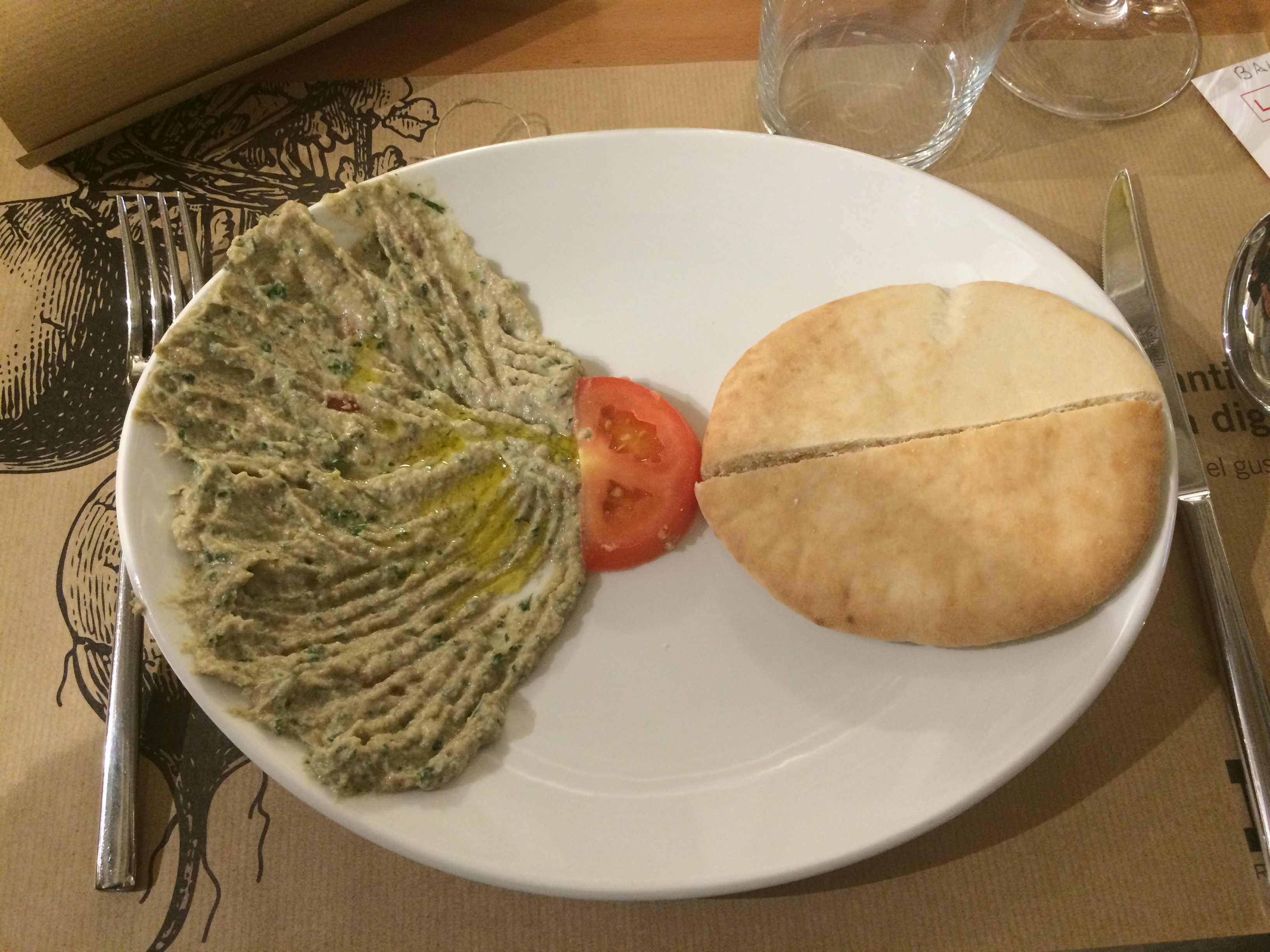Course #1 – Mutallal (baba ganoush – eggplant) with pita