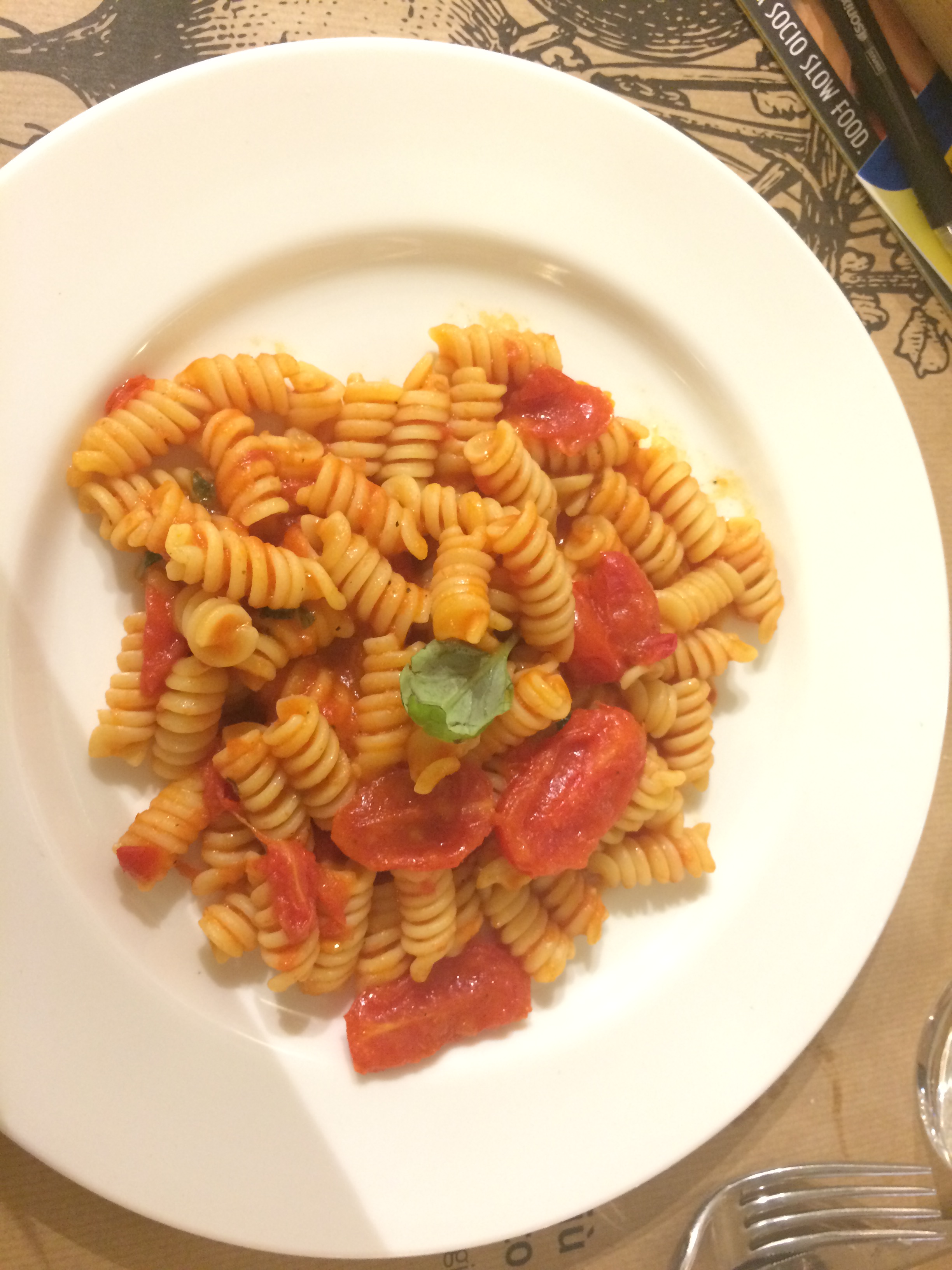 Course #4 – Italian penne pasta with basil and tomato sauce. The fourth dish was a tribute to the Palestinian guests and prepared by the Italian chefs.