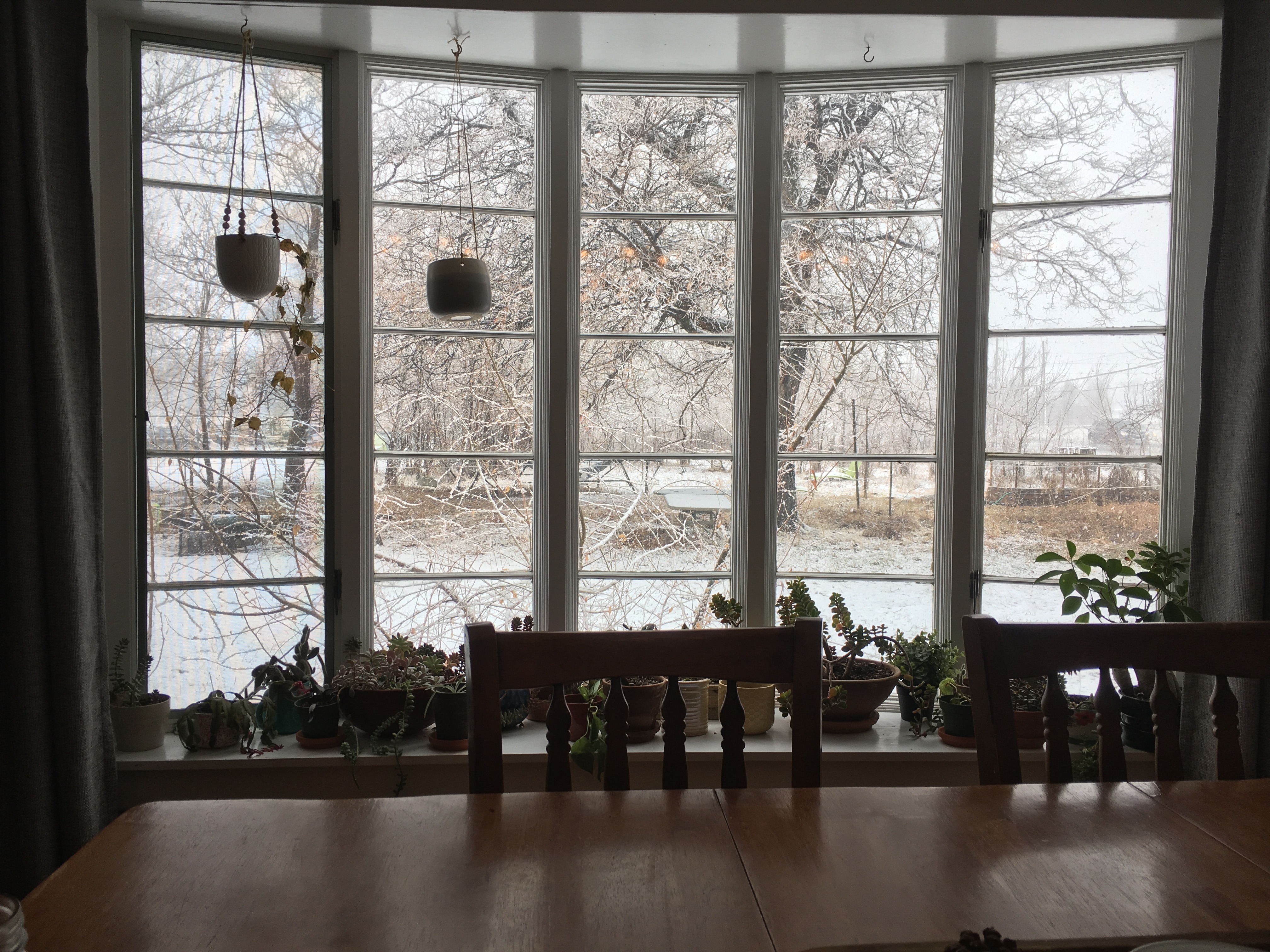 I sit next to a lovely window on the last day of my writing retreat pondering the snow blowing sideways as the wind carries it drifting across the yard. Someone in the other side of the house where I’m staying strums a guitar slowly. It’s lovely. There were children in that side of the house this morning, running up and down stairs, laughing at times, voices serious at times. There was music, “Hello darkness, my old friend; I’ve come to talk with you again,” mellow and folksy, soothing. There were the sounds of cooking and a family, not a biological family, I don’t think, but a community of selected family sharing breakfast before they took off to do chores on the farm in the falling snow. I sat in my dining room, just on the far side of the shared kitchen door enjoying my solitude and also enjoying the sounds of their community. These disparate moments, their community, my solitude led me to reflect on the importance of connection and aloneness. Not loneliness, but the need I sometimes feel to be alone, to feel my own rhythms, to do things in my own time, not influenced by the rhythms and time of others. Their time together seemed so effortless, so comfortable. My seclusion felt the same.
